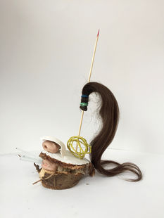 In this media I become the scavenger--collecting up-cycled and gifted materials to build these. I forage in nature as well as in local dollar stores. I am interested in duality--in this case, balancing the natural and the man made.